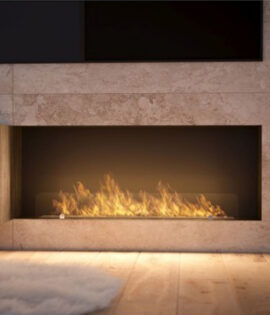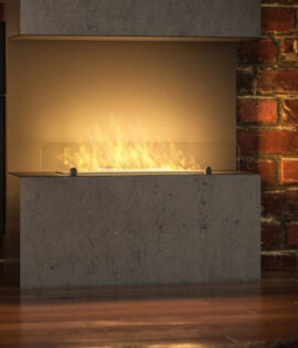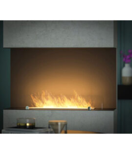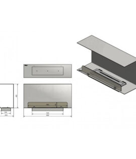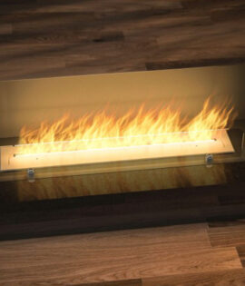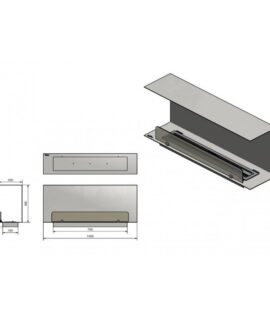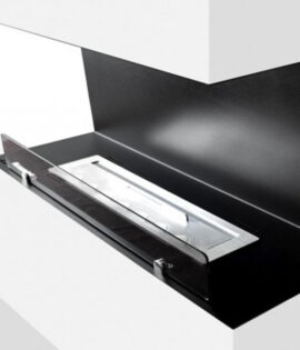 Su quemador es de 45 cm de ancho y está fabricado en acero inoxidable cepillado con un espesor de 3 mm, tiene una sencilla ranura de donde se eleva una sugerente y acogedora llama, su capacidad es de 1 litro y la llama dura aproximadamente 3 horas. El quemador, en su interior, cuenta con un material absorbente cerámico que evita fugas de biocombustible en caso de vuelco o fuerte impacto de la biochimenea. Al mismo tiempo, este material garantiza que el biocombustible se queme de manera uniforme. Este modelo de biochimenea no tiene regulación de llama y el conjunto incluye una tapa que, conectada a unos soportes, cubre la ranura del quemador para extinguir la llama de forma segura y eficaz.