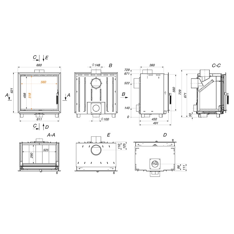 O preço original era: 1.647,00 €.1.399,00 €O preço atual é: 1.399,00 €.Inserção de lareira cassete – Into 80х62 ECO
